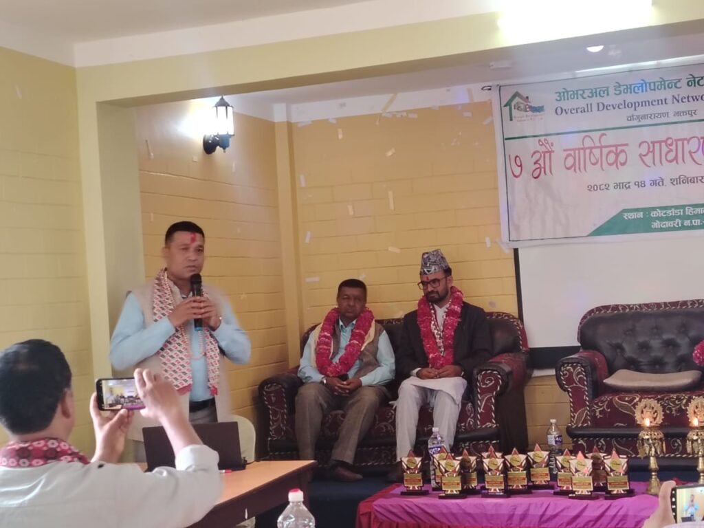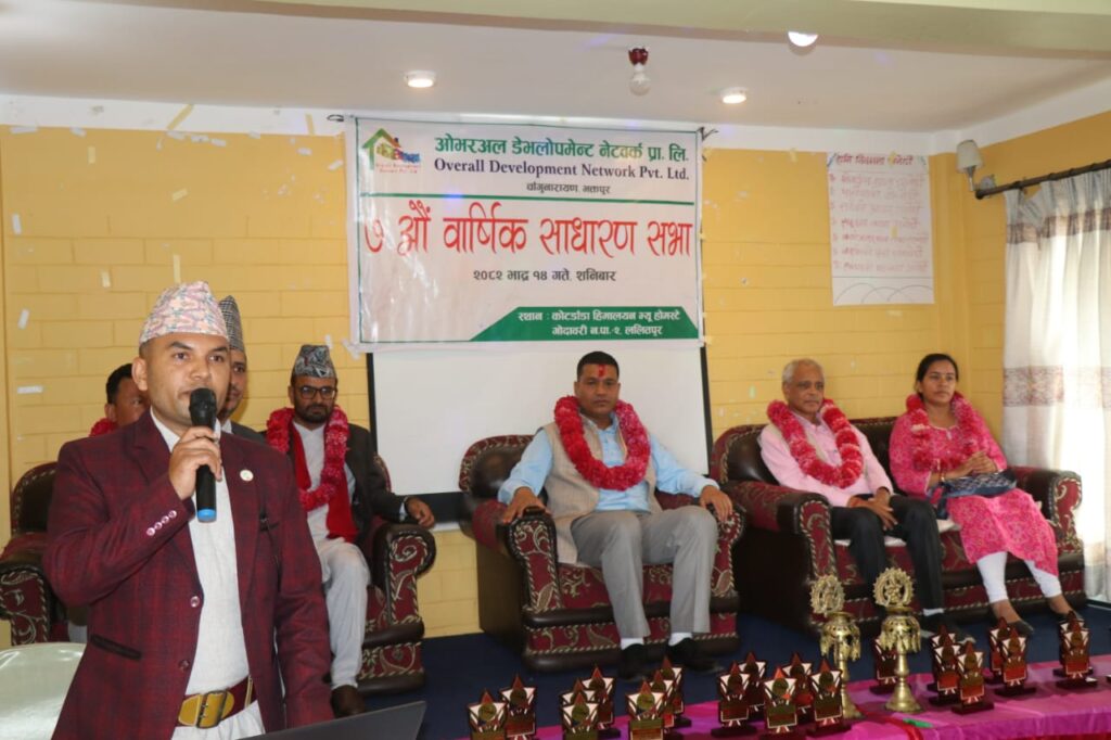 काेत डाँडा ,ललितपुर भाद्र १४ –ओभरअल डेभलपमेन्ट नेटवर्क प्रा.लि.ले आफ्नो सातौँ वार्षिक साधारण सभा ललितपुरको कोतडाँडामा सम्पन्न गरेको छ। संस्थाले पर्यटन प्रवर्द्धन, नेतृत्व विकास र युवालाई सीपमूलक अवसर प्रदान गर्ने मुख्य उद्देश्यका साथ विभिन्न गतिविधि सञ्चालन गर्दै आएको जानकारी अध्यक्ष राजकुमार लामिछानेले दिनुभयो।यसै कार्यक्रमको मुख्य आकर्षणका रूपमा बागमती प्रदेशका संस्कृति तथा पर्यटन मन्त्री सुरेश श्रेष्ठ प्रमुख अतिथि रहनुभयो। उहाँले होमस्टे पर्यटनलाई स्थानीय उत्पादन र संस्कृतिसँग जोडेर अघि बढाउनुपर्नेमा जोड दिनुभयो।